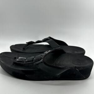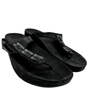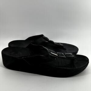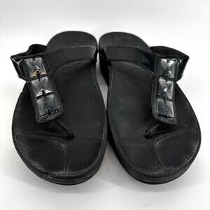 FitFlop Pietra Rhinestone Thong Sandal Slip On Soft Comfort Wedge Casual Black 9