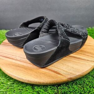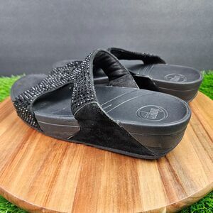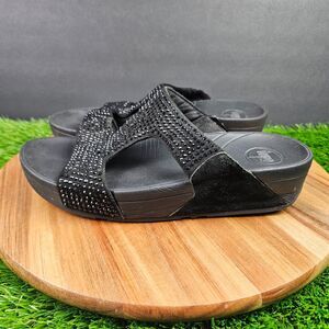 FitFlop Rokkit Crystal Slide Sandals Womens Black Slip On Sparkle Casual Size 7