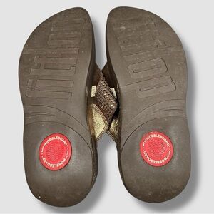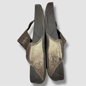 FitFlop Rokkit Leather Rhinestone Thong Sandal Size 10 Brown Thong Platform Suede Metallic