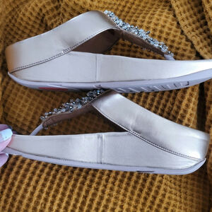 FitFlop Rose Gold Rumba Beaded Sparkle Comfortable Metallic Toe Post Sandal US 9