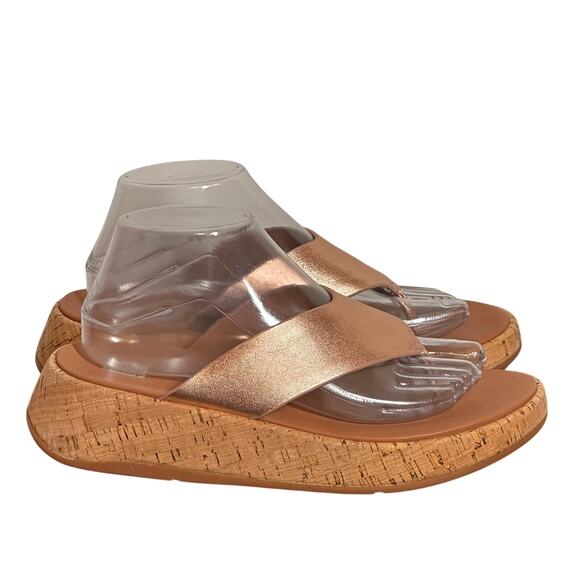 FitFlop Rose Metallic F-mode Leather/Cork Flatform Sandals Sz8