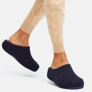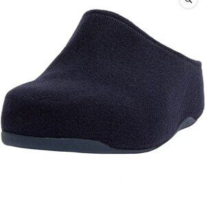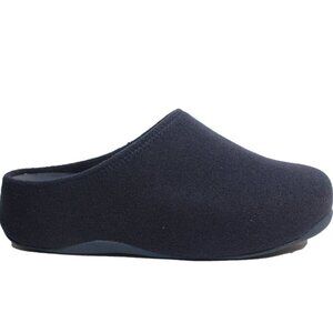 FitFlop SHUV E01 Felt Clog Slippers Navy Blue Slip-Resistant Rubber Soles NIB