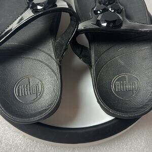 FitFlop Sandal Flip Flop 5 Women’s Black Jeweled Embellished Beach Pool Vacay