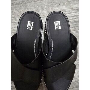 ️ besides two marks shown everything else is in amazing condition!!The FitFlop Sandal Womens 7 Black Leather Eloise Cross Strap Platform Espadrille is a stylish and comfortable sandal perfect for casual wear or travel. Featuring a slip-on closure, high heel, and wedge heel style, this sandal offers both style and comfort. The espadrille platform adds a trendy touch, while the microwobbleboard technology ensures a cushioned and stable experience. Made of high-quality leather, this sandal is durable and designed to last. The black color and solid pattern make it versatile for various occasions, from summer to fall and spring. Perfect for beach outings, outdoor activities, and any 90's-inspired fashion ensemble.
