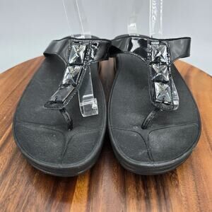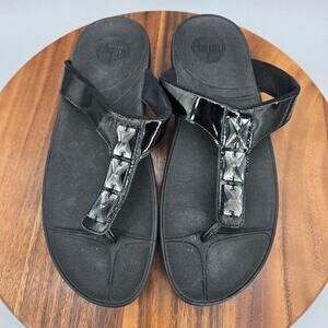 FitFlop Sandals Womens 11 Black Patent Leather Pietra Slip On Platform Shoes