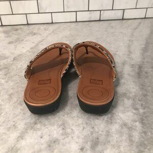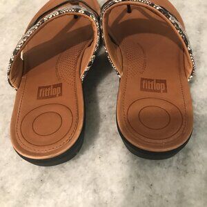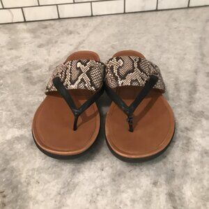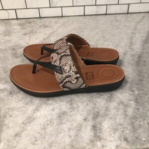 FitFlop Sandals Womens 7 Snake Print Thong Flip Flop Black Brown Slip On