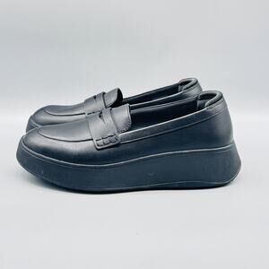 FitFlop Shoes Women 7.5 Black Platform Penny Loafer F Mode Slip On Wedge Comfort