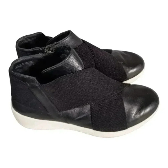 Elevate your style with these sleek black FitFlop SuperFlex ankle boots. Made from high-quality leather, these boots feature a round toe and a low wedge heel, making them the perfect choice for travel or casual wear. The synthetic outsole provides durability, while the cushioned and lightweight features ensure all-day comfort. These boots are available in US women's size 5, UK size 3, and EU size 36. The zip closure makes it easy to slip on and off, and the leather lining material adds an extra touch of luxury. Whether you're heading out for a business meeting or running errands, these FitFlop SuperFlex boots are the perfect addition to your wardrobe.