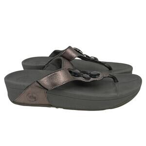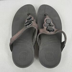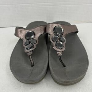 FitFlop Thong Sandals Size 8 Jeweled Metallic Slip On Toe Post Flip Flop Shimmer