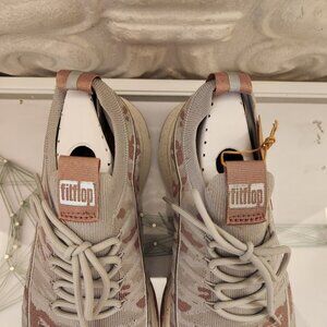 FitFlop "Vitamin FF EO1 Camo" Knit sports sneakers. NIB. Size 7. NIB/Original box/packaging. Both box and sneakers are perfect. No rips/stains/scuffs/tears/peeling/wear or flaws. Smoke free home. No odors. All offers are welcome. Thank you! Color a soft mauve and grey.