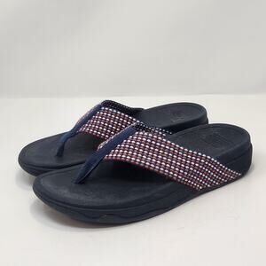 FitFlop Women Surfa Navy Blue Thong Slip On Sandal Size 7 Casual Arch Support