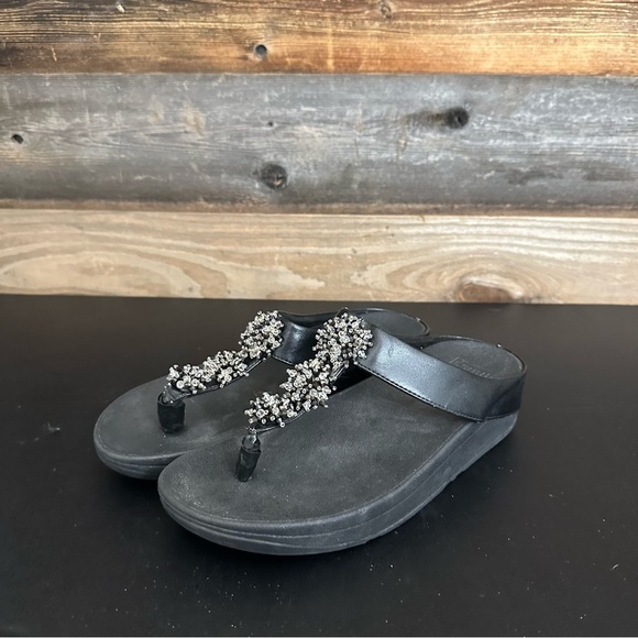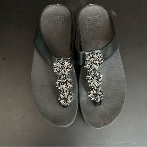 FitFlop Women’s 8 Galaxy Rumba Beaded Thong Sandals Flip flops Black Comfort