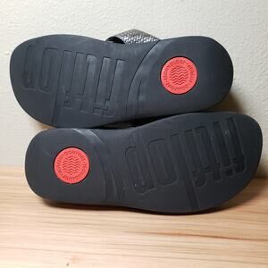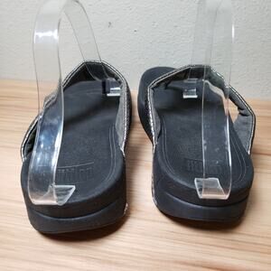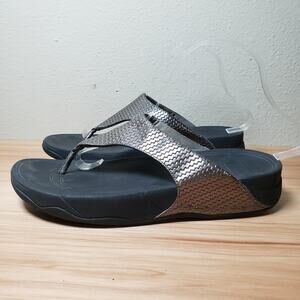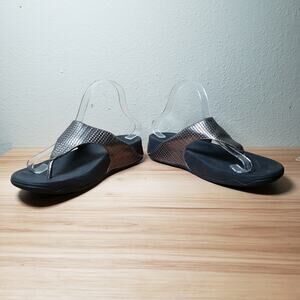FitFlop Women's 9 Lulu Wedge Flip Flop Sandals Black Silver Comfort Metallic