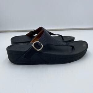 FitFlop Women's Black Leather Slip-On Flip-Flop Sandals Size 8 #350-001