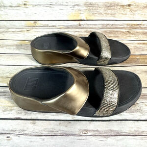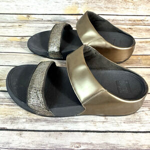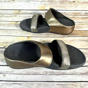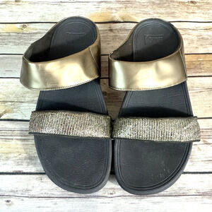 FitFlop Womens Bronze Lulu Glitterdust Slip On Slides Sandals 9
