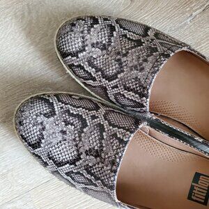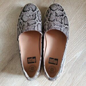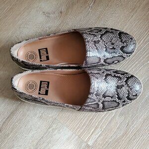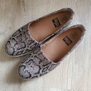 FitFlop Women's Casa Snake Embossed Leather Wedge Platform Loafers Size 9