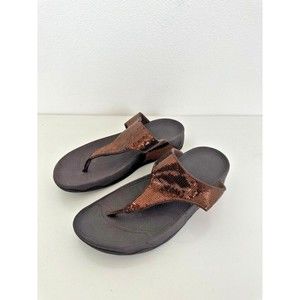 FitFlop Women's ELECTRA Sequin Toe-Post Sandals Brown Platform Size 9 Orthopedic.