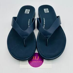 FitFlop Women's Gracie Leather Thong Flip Flop Sandals Midnight Navy Size 5