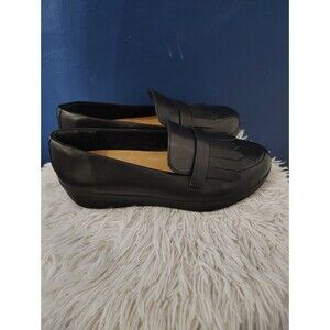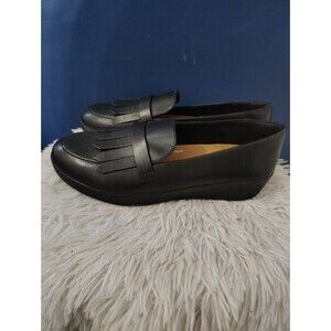 FitFlop Womens Leather Loafer wedge SUPERSKATE FRINGE Black Size 9