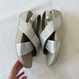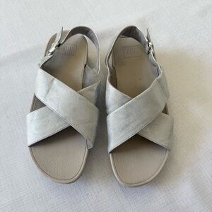 FitFlop Women's Lulu Cross Backstrap Silver Gray Summer Outdoor Sandal Size 9