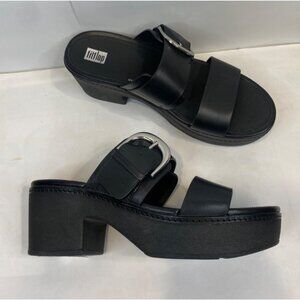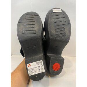 FitFlop Women's Pilar Leather Platform Heeled Sandals Wedge Clog Black Size 10