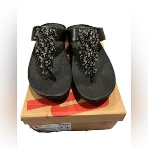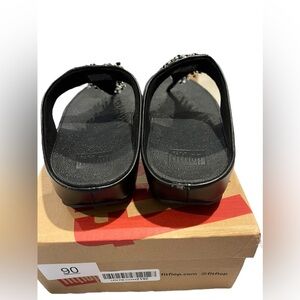 FitFlop Women’s Rumba Beaded Toe Post Black Sandals size 10