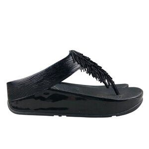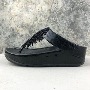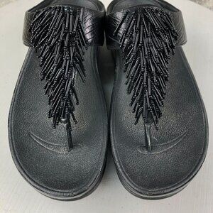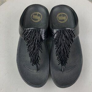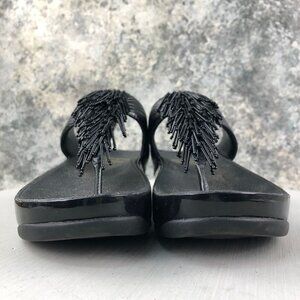 FitFlop Women's Size 5 Cha Cha Black Beaded Open Toe Thong Slip On Wedge Sandals