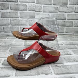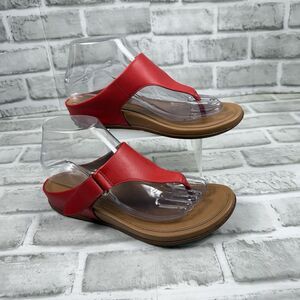 FitFlop Women's Size 7 The Skinny Red Leather Toe Post Thong Comfort Sandals