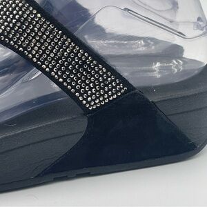 FitFlop Women’s Sz 7 Lulu Shimmer Black Rhinestone Sandals Comfortcore Glam Chic