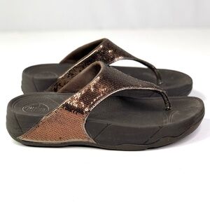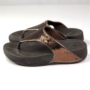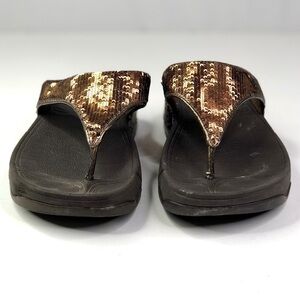 FitFlop thong sandals metallic bronze sequins supportive rubber sole 6
