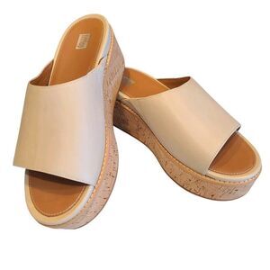 FitFlop Eloise FT5-A20 Slides Sandals Women Stone Beige Leather Cork Wrap Wedge | 9US | EUC | MSRP $119 | 2.75"Heel Height/ 1.75" Platform Height