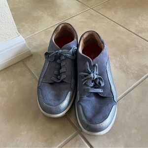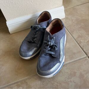 Your new off-duty hero is FitFlop's easy-on-the-eye, wearable take on the chunky trainer trend. Curved panel detailing and mixing smoothe with shimmery suede to give these sneakers a dash of glamour. The sporty-look version of FitFlop's legendary Microwobbleboard™ midsole delivers a whole lot of comfort and cushioning all through your day. Wear them to the shops, to lunch with friends, wherever.