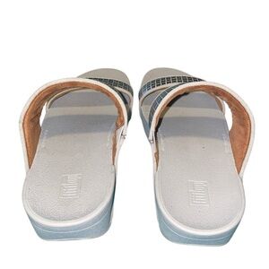 Step out in style with these chic silver slide sandals. Perfect for casual outings, these sandals offer both comfort and elegance.