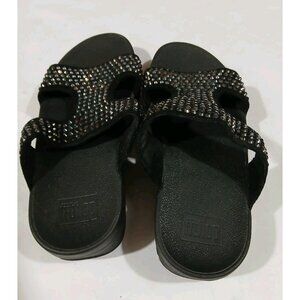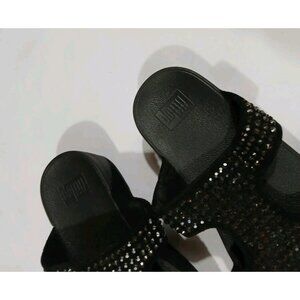 FitFlops Glitzie Thong Sandal Flips Flops. Size 7. Black with Rhinestones. Slip on. Open toe. Beach, walking, travel, casual. In nice, preowned condition. Minor wear to bottoms.