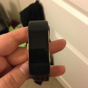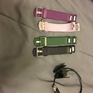 Used Fitbit Charge 2 with a scratch on screen. Screen still works well. There are four extra wrist bands and the charging cord.