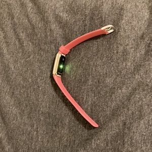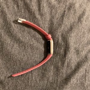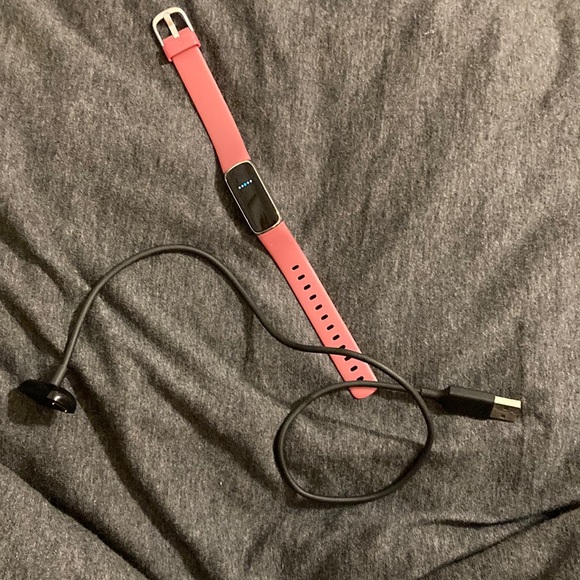 A maroon FitBit. Comes with charger, slightly used. Very accessible and waterproof.