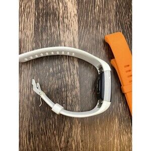 Bands are like new all silicone material white, orange and light pink. Aluminum case working smartwatch monitor your steps, workouts, sleep, and heart rate. Need to buy a charger they are not very expensive. Screen in good condition no cracks