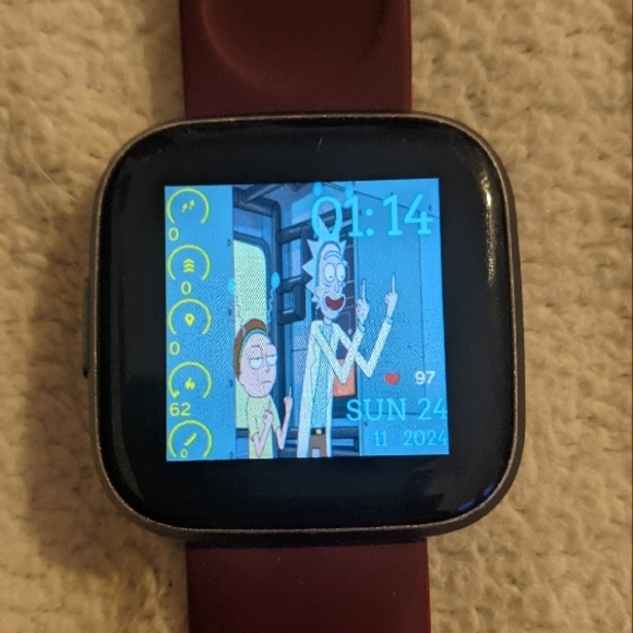 Stay connected and track your fitness with this stylish smartwatch featuring a vibrant display and a sleek burgundy band.