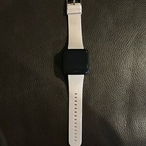 Fully functional Fitbit original versa. In great condition, no scratches or chips, almost like new. This device is a great way to track your heart rate, steps and much more! The wrist band is a size small but can fit up to a medium.