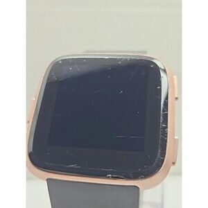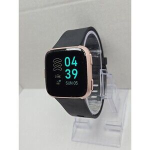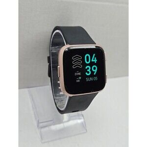 Fitbit Versa, FB504, Fitbit Smartwatch, Fitness Tracker, Heart Rate Monitor, Sleep Tracker, Step Counter, Activity Tracker, Connected GPS, Bluetooth Watch, iOS Android Compatible, Notifications, Swimproof, Water Resistant, 34mm Case, Aluminum Case, Black Watch, Unisex Adult, Charger Included, Tested Working, Factory Reset, Pedometer, Multi Sport, Calorie Tracker, Exercise Log, Distance Traveled, Stopwatch, Timer, Wristband, Silicone Band, Everyday Wear
