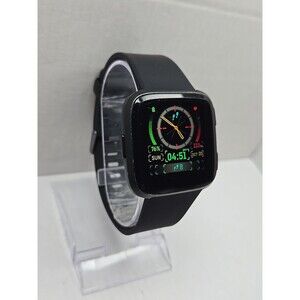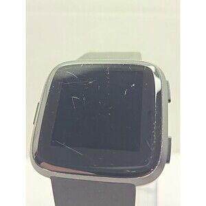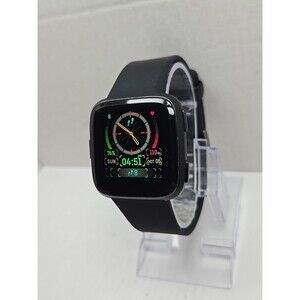 Fitbit Versa, FB504, Fitbit Smartwatch, Fitness Tracker, Heart Rate Monitor, Sleep Tracker, Step Counter, Activity Tracker, Connected GPS, Bluetooth Watch, iOS Android Compatible, Notifications, Swimproof, Water Resistant, 34mm Case, Aluminum Case, Black Watch, Unisex Adult, Charger Included, Tested Working, Factory Reset, Pedometer, Multi Sport, Calorie Tracker, Exercise Log, Distance Traveled, Stopwatch, Timer, Wristband, Silicone Band, Everyday Wear