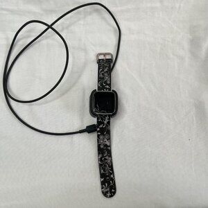 For parts only Fitbit Versa Smartwatch With Black & Silver Floral Band & Charger