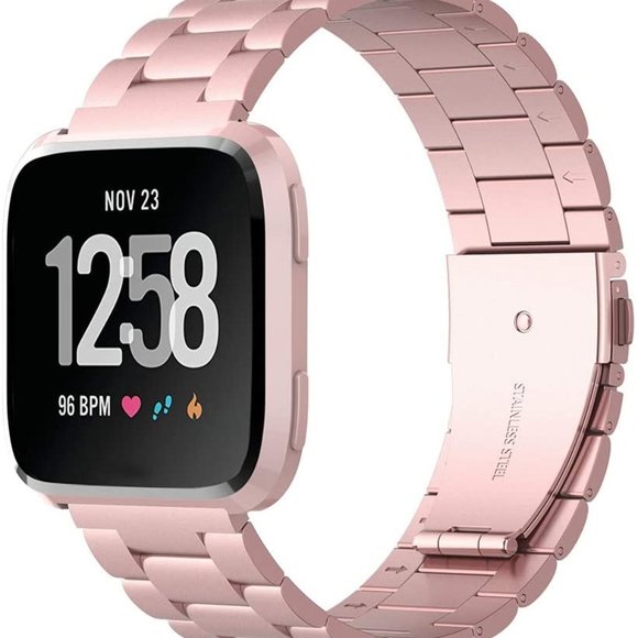 Compatible with Fit bit Versa/ Fit bit Versa 2/Fit bit Versa Lite ( Smart watch not included), Band length is adjustable to fit well to your wrist, suitable for 5.5 inch-8.5 inch wrist. Up to 8pcs links can be removed, come with 2x spring pins and link removal tool, please refer to the package manual. The band is consist of premium 316L stainless steel which are polished by a number of processes and colored by vacuum plating.
