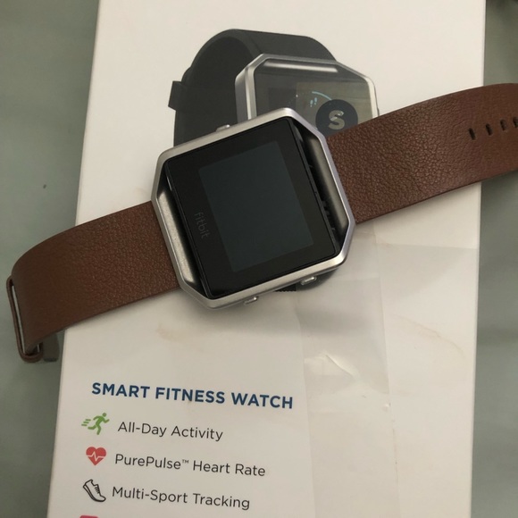 Fit bit blaze. Worn inconsistently for about a year. Watch is in great condition. Do not have original straps but has brown faux leather straps. Easy to replace. Comes with charger and original instructions.