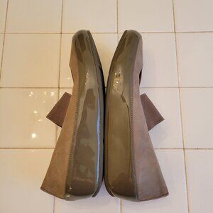 Fitflop 39 Gray Olive Mary Jane Wedge Shoes 8 Comfort DUE Platform Patent Leathe