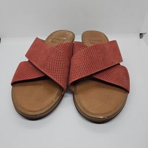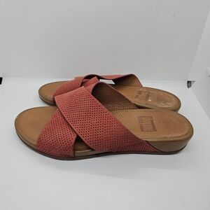 Fitflop Aix Slide Perforated cross sandals light red leather size 8