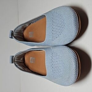 Fitflop Allegro Airyknit Ballet Flat Shoe Pull-On Round Toe Comfy Blue Silver 7