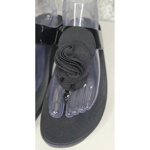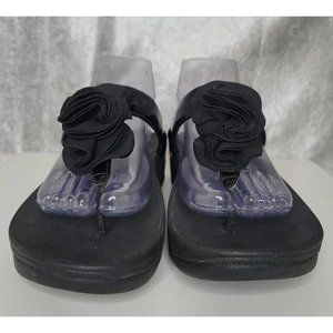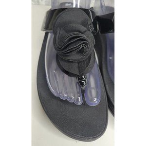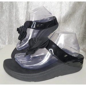 Fitflop Black Patent Wedge Florrie Toe Post Flower Decor Shoe Women’s Size 8 GUC