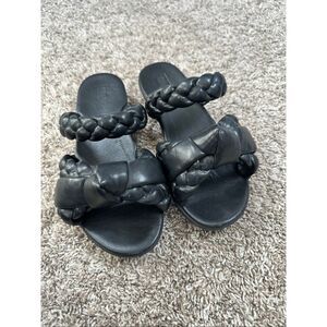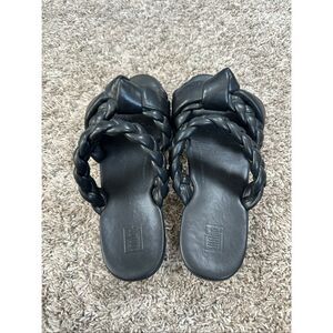Fitflop Braid Slide Open Toe Sandal Shoes Faux Leather Black Women’s 8 Comfort