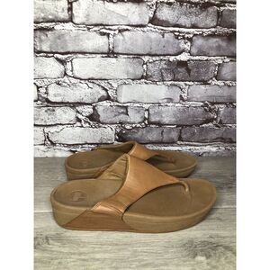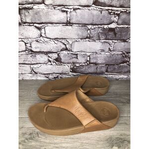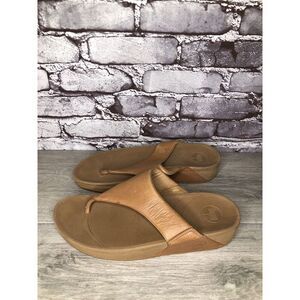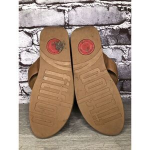 Fitflop Camel Tan Leather Flip Flop Wobble Board Sandals Women’s Sz 10M US/42EU